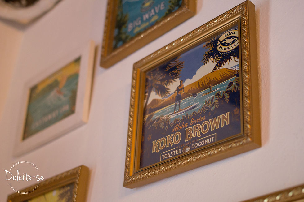 Para deixar os ambientes do jeito que eles queriam, eles mesmos fizeram tudo que envolvia marcenaria e carpintaria, desde a estrutura de madeira da cobertura do pátio até os móveis – balcão, sofás de pallets e mesas de tora de madeira, lindas!! Foram eles inclusive que executaram as paredes de gesso acartonado onde estão os banheiros. Na decoração, eles apostaram nas lembranças trazidas de viagem e arte. Os grafites que dão cor ao espaço são assinados pelos artistas André Pardini e PH, ambos trazem o lúpulo – marca da cervejaria, como elementos de destaque. Na entrada da cervejaria, o destaque está em uma canoa de Garapuvu com 52 anos de história: batizada como Catarina I, a canoa trazido da Costa da Lagoa, que mesmo sem medição prévia encaixou perfeitamente na frente da casa!